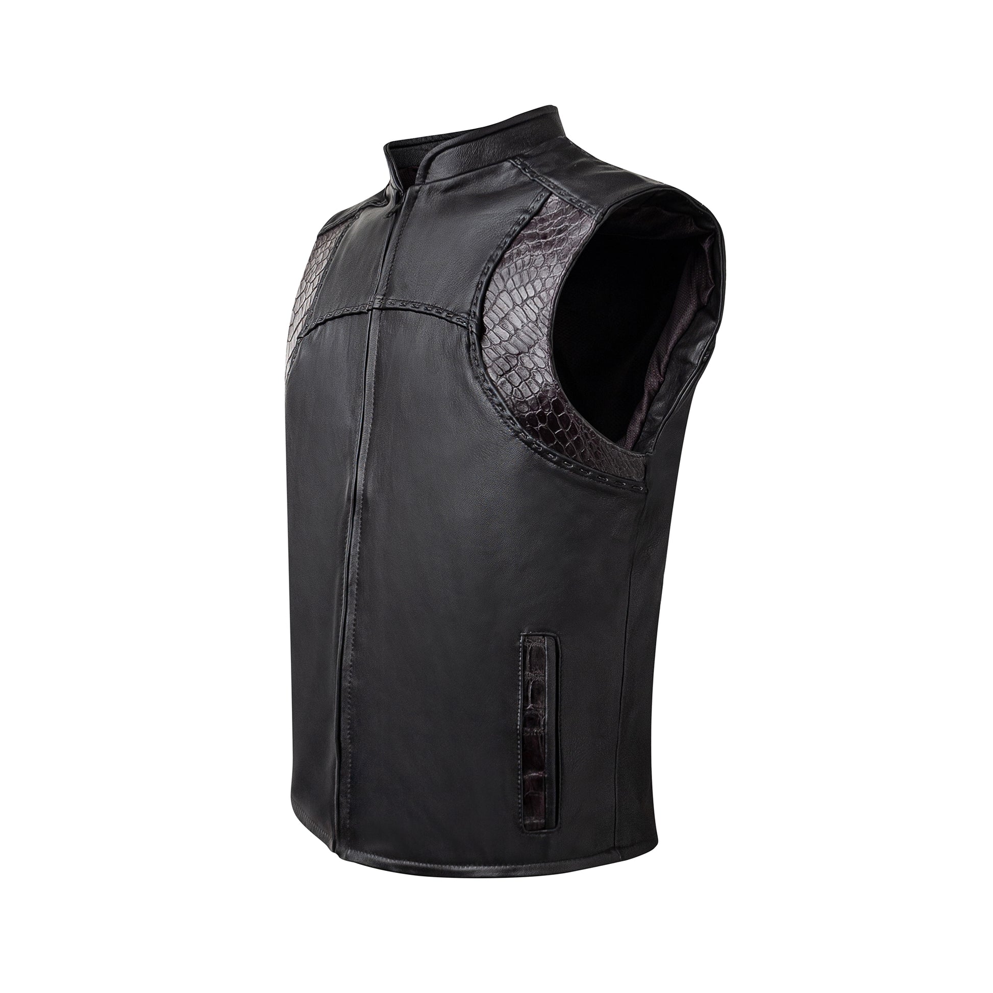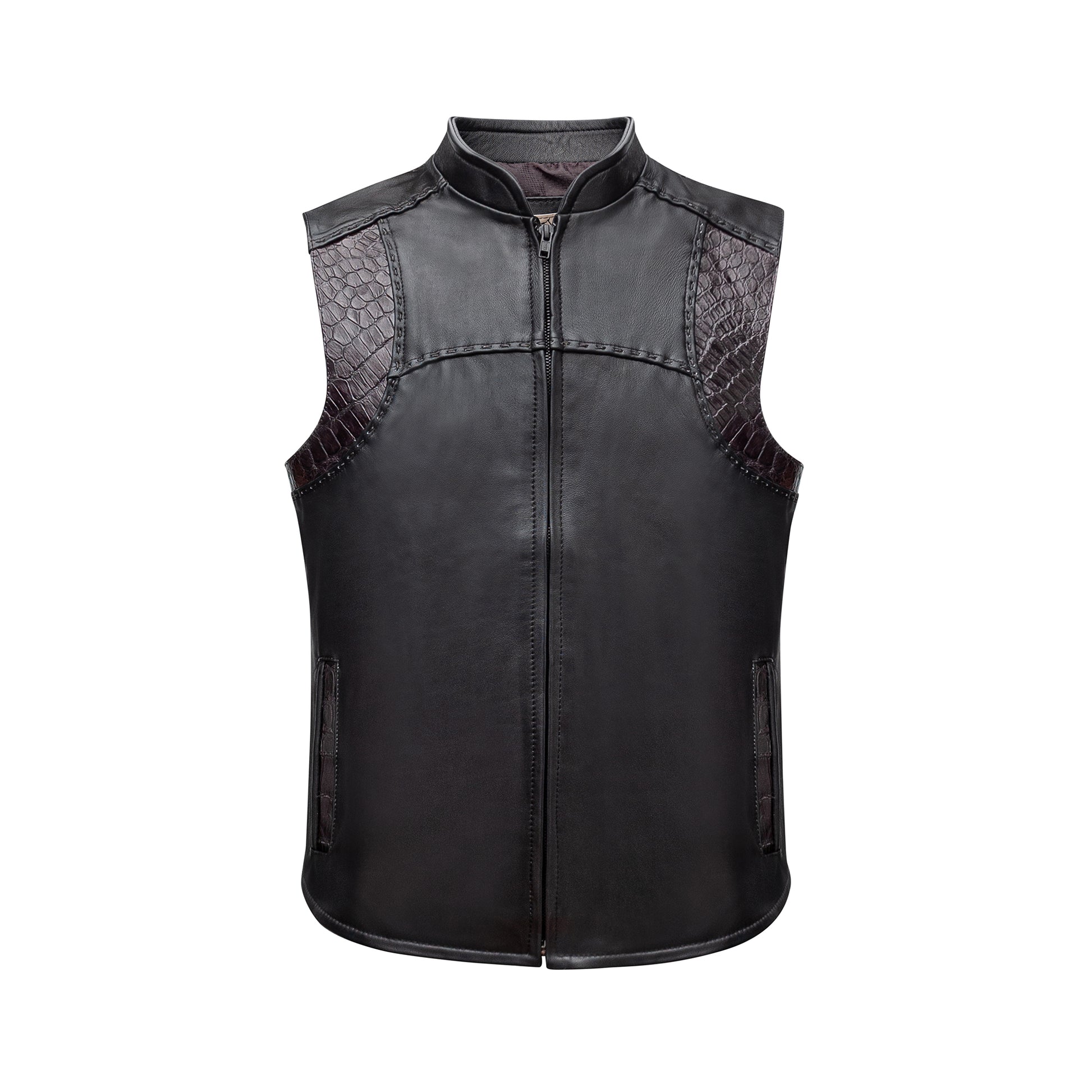 Crocodile leather vest, hand-woven