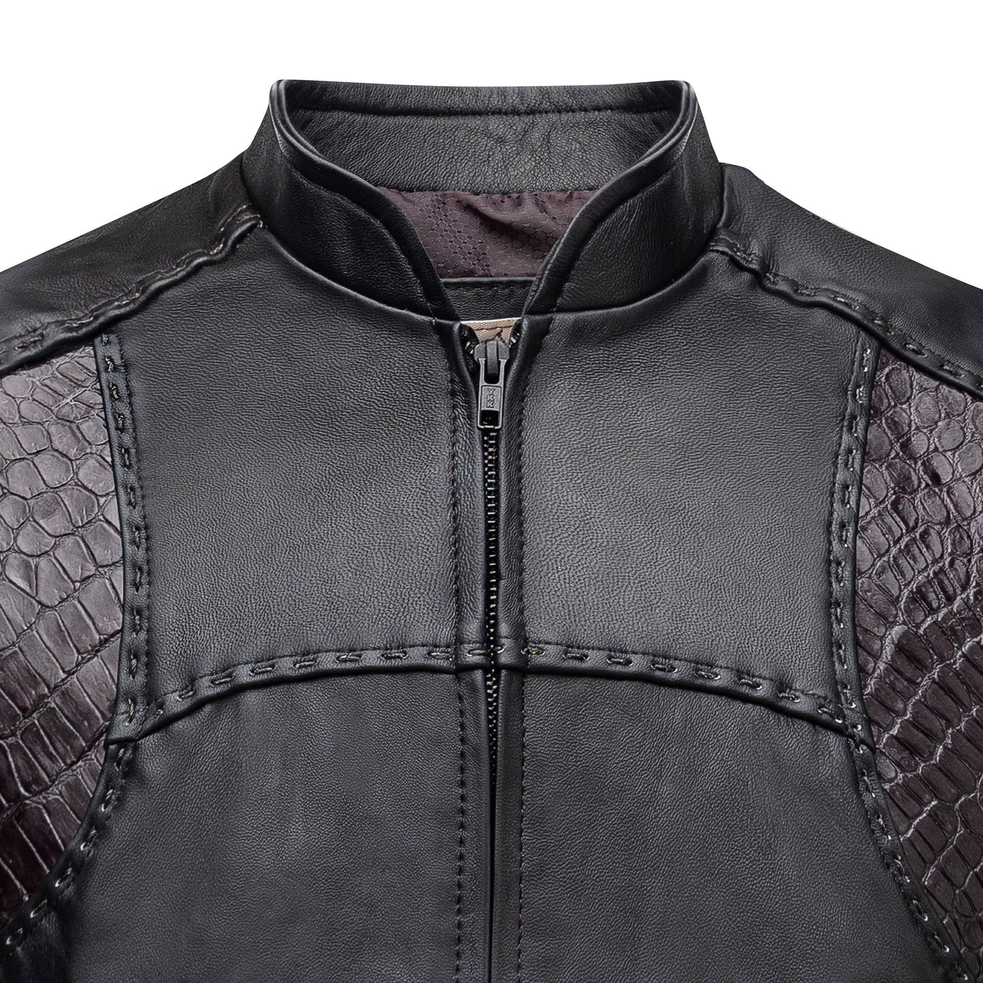 Experience the style and the quality on every occasion with our exclusive Ares vestCarefully handcrafted by expert craftsmen who take care of every detail, this vest of Pelibuey sheepskin It stands out for its elegant crocodile inlays and handcrafted textiles.